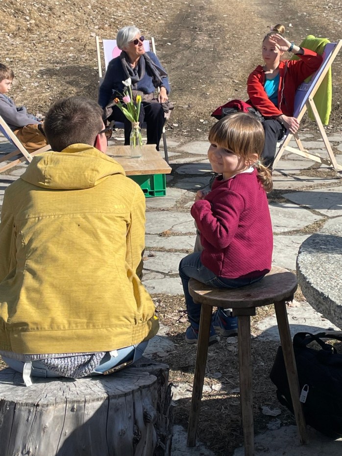 Merci au printemps qui a été généreux en lumière, pour ce passage de l’équinoxe vernal. Merci à Sylvie Bourban, qui en plus d’être une amie merveilleuse, une chanteuse extraordinaire, est une photographe et une aide très appréciée ! Merci à Juliette, qui a pris le relais à l’épicerie pour que je puisse vous accueillir comme il se doit. Et un merci tout particulier à Vanessa Métrailler, notre conteuse de l’équinoxe, et à sa charmante famille.
